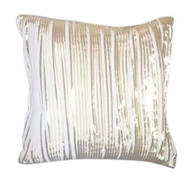 This handmade exquisite gold and white silk pleated cushion cover is back with white linen. It catches the light with its delicate luster for a funky metallic pop or an element of sophistication for a more formal setting. I also lined the silk face with cotton to make it more structured.